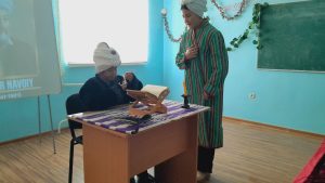 Kegeyli rayonı 11-sanlı balalar muzıka hám kórkem-óner mektebinde Nawayı shıǵarmaların úyreniw boyınsha kitapqumarlıq kesheleri ótkerildi.Bunda oqıwshılar qatnasıwında shayırdiń qálemine tiyisli qosıqlar, shiǵarmalar, ómiri hám dóretiwshiligi haqqında saxnalıq kórinisler shólkemlestirildi.